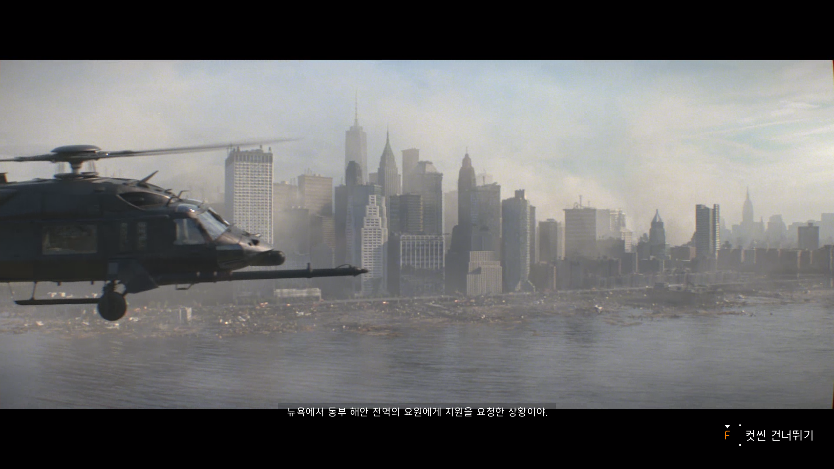 일단 워싱텅 DC를 뒤로하고 뉴욕으로 떠나보도록하자! 헬기를 타고 이동하게 되며, 컷씬을 보여준다. 뉴욕에 도착하자마다 총질을 해야한다. 이미 뉴욕은 라이커(탈옥수갱단)와 클리너(화염방사기를 통한 전염병확산을 막기위해 노력한 전직 뉴욕시 환경 미화원 직원들이 모인 집단)로 무법천지가 되버린 상태다 내리자마자 반겨주는 라이커와 클리너들을 전부 몰살시키도록 하자!