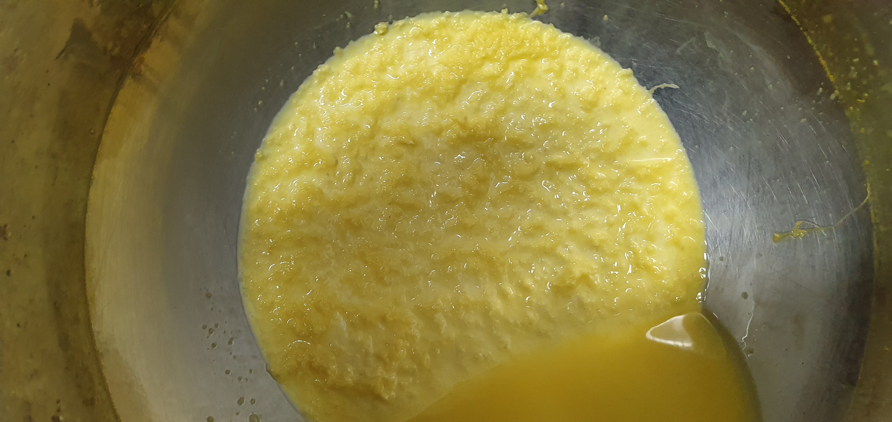 1. 생강즙은 바로 사용하면 안 되고, 1시간 정도 그냥 두는 것이 좋다. 그냥 두고 나서 다른 곳에 옮겨 담아야 하는데 이때 위 첫번째 사진과 같이, 생강 전분이 아래에 가라앉아 있는 것을 볼 수가 있다. 생강전분을 따로 분리하는 작업을 꼭 해야 하는 데 이유는 생강 전분이 엄청나게 쓰고 매운맛을 내기 때문에, 생강즙을 내자마자 바로 사용하게 되면, 생강차 먹을 때마가 괴로움을 호소할 수도 있으니 꼭 걸러주도록 하자!