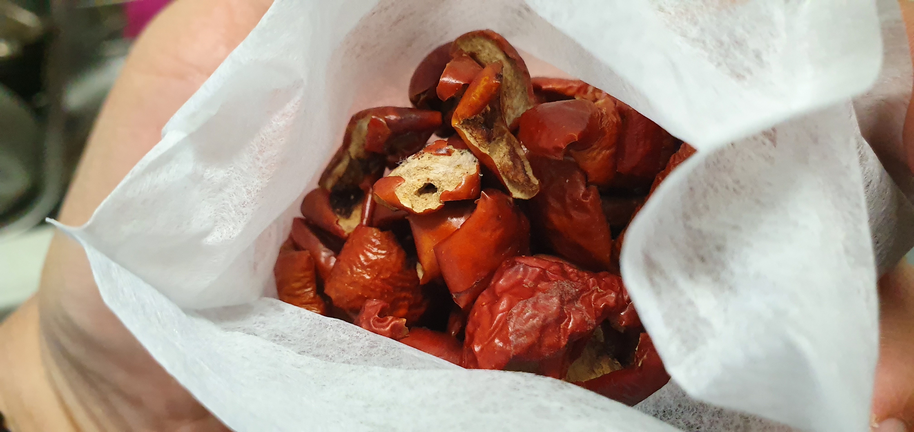 여기까지 오셨다면 이제는 완벽한 면역력 인간이 되기 위한 준비의 마지막 단계까지 왔다고 보면 된다. 마지막으로, 전 작업에서 냄비에서 섞어주었던 즙을 가스레인지에 올려주면 되는데, 즙만 끓여주기에는 무언가 부족하기 때문에, 다시마 팩에 대추를 넣어주고 또 다른 다시마 팩에 배 찌꺼기를 담아준다. 준비물을 담은 2개의 다시마 팩을 냄비에 같이 넣어주고, 끓여주면 된다. 필자는 1시간가량 끓여서 달여주었다. 그러면 끈적함이 느껴지는 진한 생강청이 완성이 된다. 이제 무엇을 해야 하는가? 마시고 면역 무적이 되면 된다.
