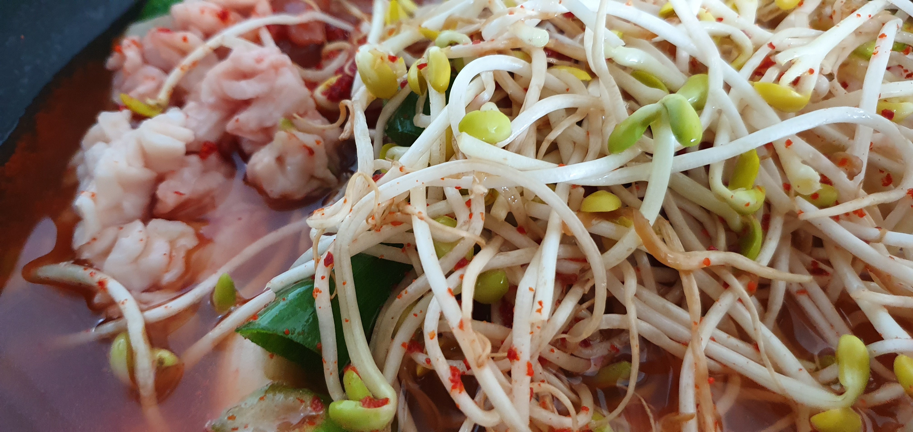 이렇게 함쌈 크게 만들어서 입에 넣으면 쫄깃하고 매콤새콤한 복어껍질무침과 톡톡 터지는 날치알의 조화가 입안에서 맴도는데 너무 맛있었다. 정말 술 한잔 진하게 기울이고 싶은맛인데, 집에서는 술을 잘 먹지 않는 관계로 배만채우기로 하였다. 그런데, 여기서 국물이 빠지면 섭하니 같이 포장해 온 알탕도 냄비에 넣어 팔팔 끓여내서 탕 그릇에 옮겨 왔다 이게 리얼 진국인데, 무침 한입에 알탕 한 숟가락이면 세상을 다 가진 기분이다