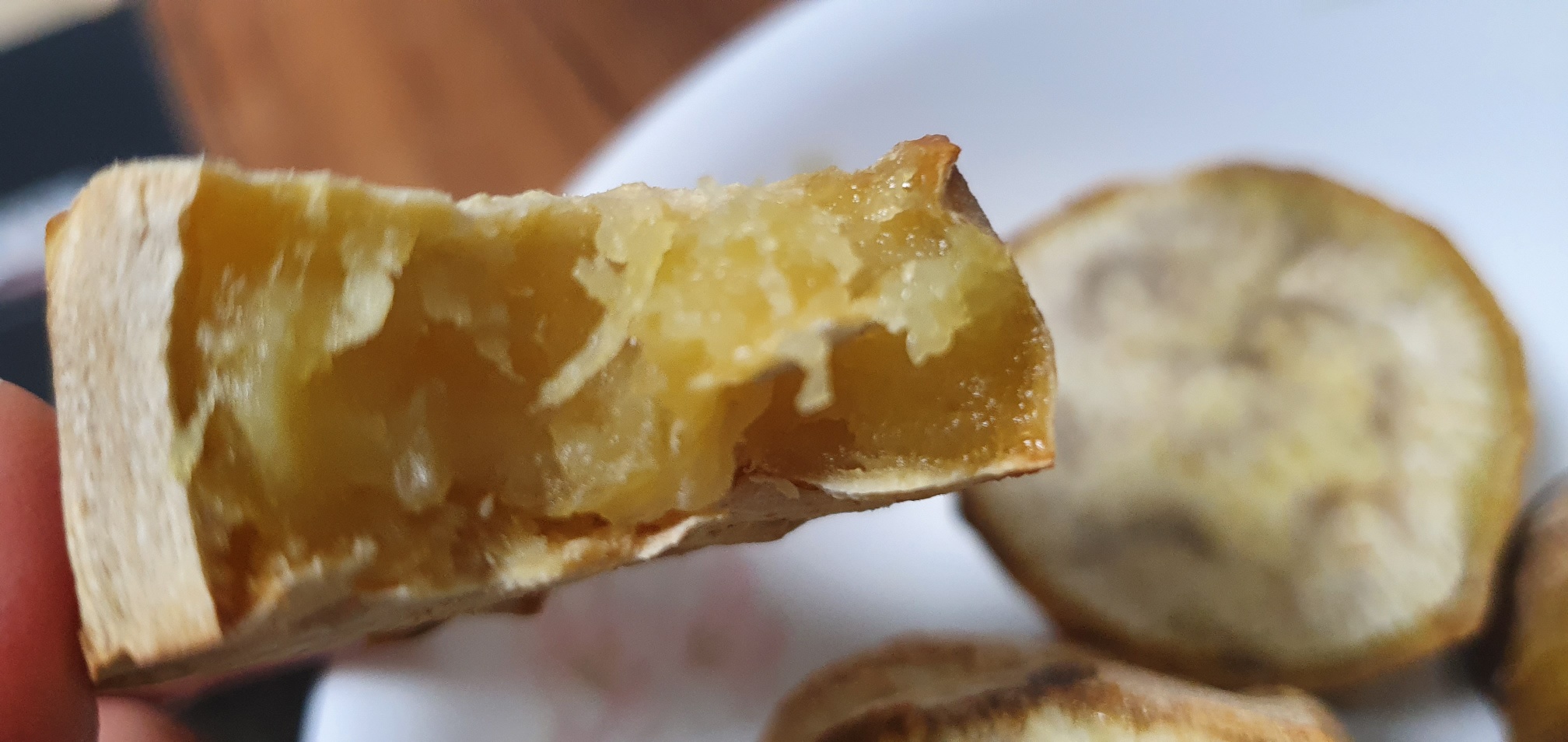 꿀 떨어진다는 말을 리얼로 확인할 수 있는 에어프라이 군고구마다. 위 사진은 필자가 연출한 것이 아니라 실제로 찐득한 꿀이 고구마에서 흘러나온 것이 신기하여 찍어본 것이다. 일단 사진만 보아도 에어프라이로 고구마를 구워본 것은 신의 한 수였던 것 같다. 일단 먹어보면 당연히 달달한 고구마를 맛볼 수 있다. 물론 화력으로 직접 구워 먹는 군고구마와는 느낌 자체가 다르긴 하지만, 포크를 활용해서 뭔가 깔끔하게 맛있는 고구마를 즐길 수 있다는 장점이 있다. 또한 겉모습으론 그렇게 맛있어 보이지 않지만, 속은 촉촉하게 달콤한 고구마의 맛을 그대로 담고 있다. 말해 무엇하랴 일단 잡숴봐야 알 수 있다.