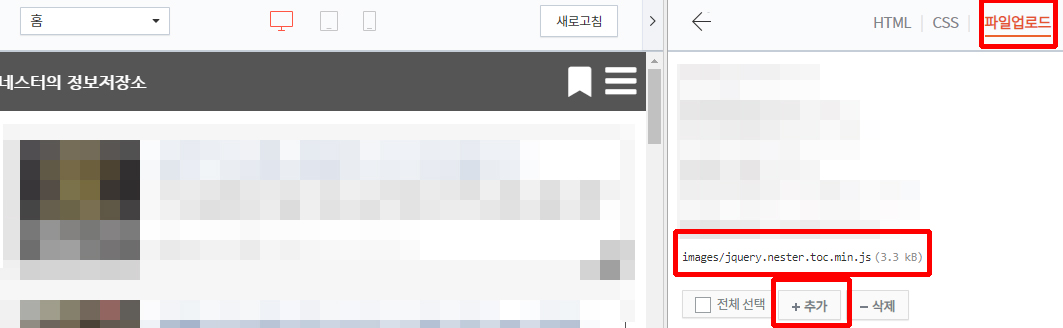 목차 제이쿼리문 티스토리 업로드 하기