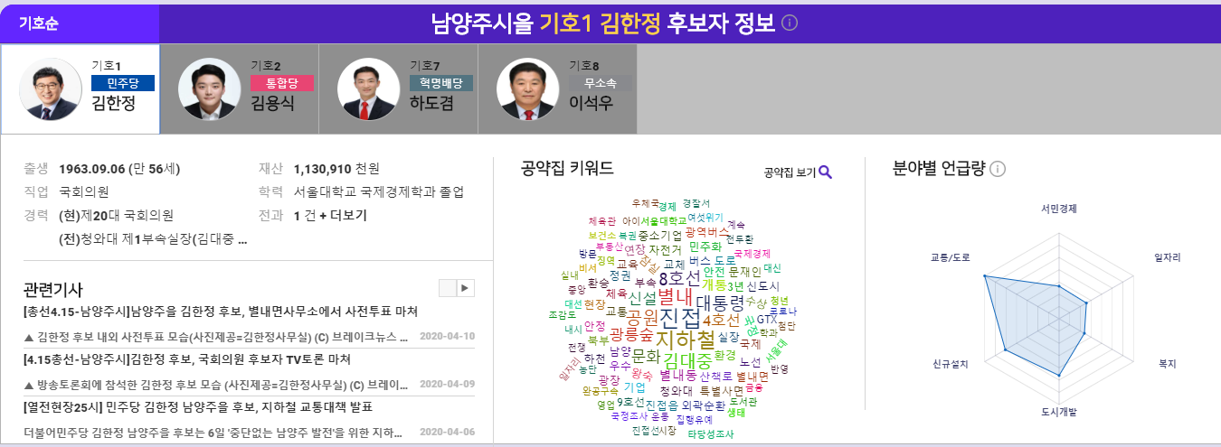 빅데이터 기반의 후보자 검색 및 총선 관련 후보별 비교