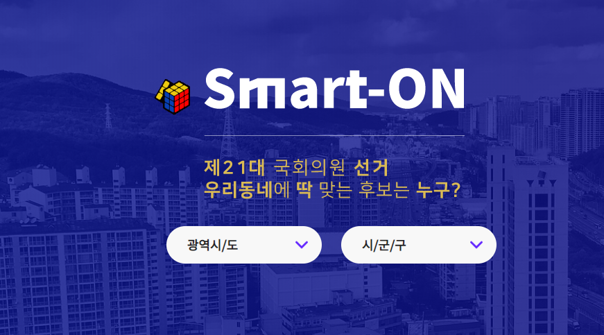 본인이 살고 있는 지역을 빅데이터로 진단한 내용과 총선에 출마한 후보자들의 공약을 한 번에 비교할 수 있다 스마트온사이트는 이 곳을 클릭하면 해당 사이트로 이동하며 각 후보자 비교분석을 할 수 있다