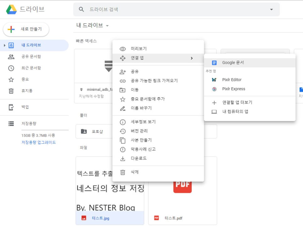 위 구글 드라이브에 접속하여 본인 계정으로 로그인하고 텍스트 추출이 필요한 파일을