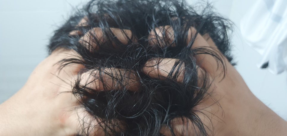 수건으로 대충 털고 찍어본 사진입니다.! 사진상으로 잘 보일지 모르겠지만 두피가 확실히 좋야졌습니다. 두피에 났던 뾰루지 등도 가라앉았습니다. 꾸준히 사용해 볼 만한 가치가 충분히 있디고 생각돼는 제품입니다.