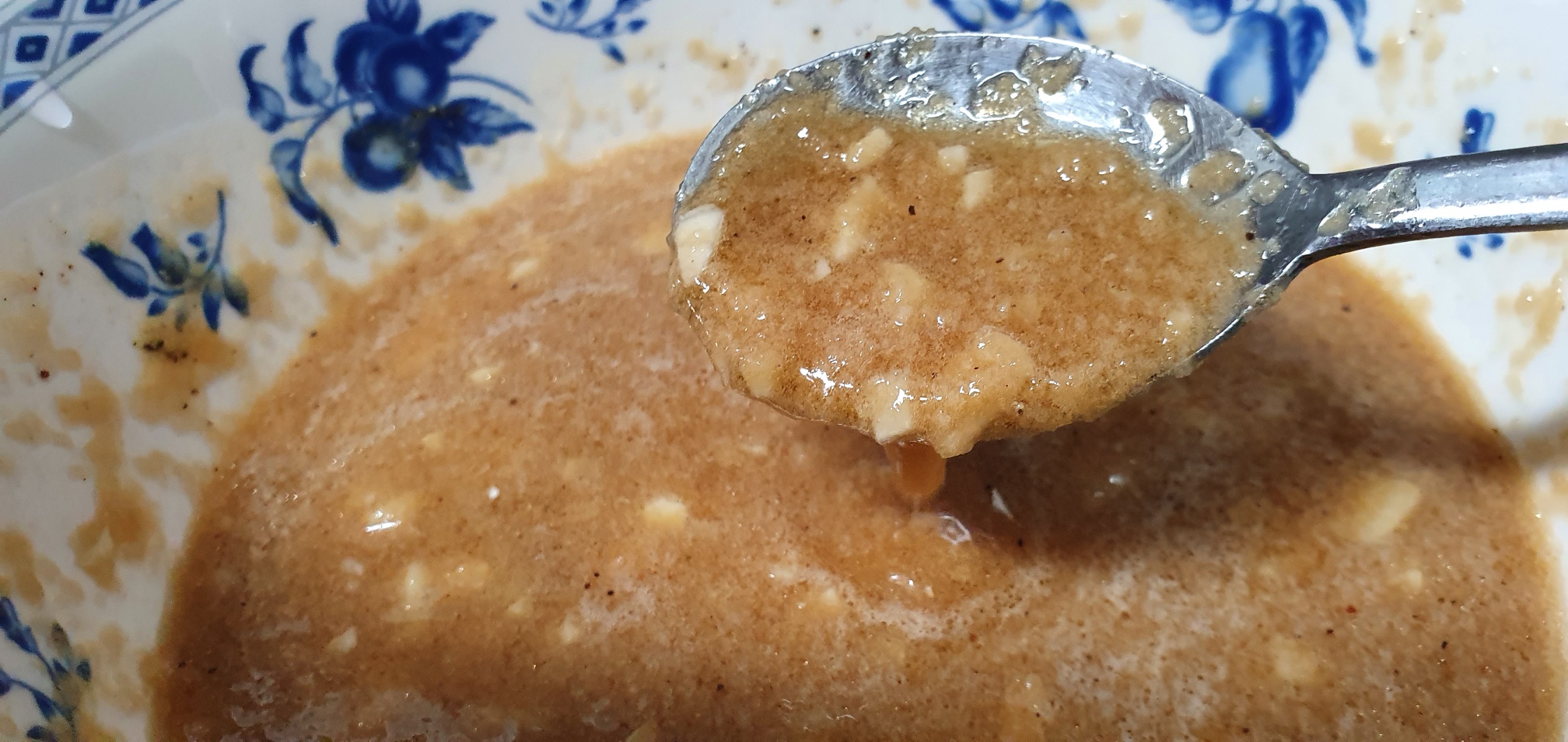 앞서 양파와 생강술을 넣어 믹서기에 간 것을 그릇에 옮겨 담은 뒤에 먼저 설탕을 1큰술 넣어준다, 이어서 진간장을 6큰술 넣어주면 된다. 이후, 참기름을 1큰술 넣고, 매실액과 올리고당을 각각 3큰술 넣어주면 된다. 그리고 후추를 살짝 넣으면 갈비맛 양념이 완성되는데 한 가지 빠진 것은 바로 다진 마늘이다. 다진 마늘은 만들어진 다진 마늘을 사용하는 것보다, 통마늘을 직접 잘게 잘라서 넣어주는 것이 풍미가 강해서 맛이 훨씬 좋아진다. 귀찮으면 만들어진 다진 마늘을 사용해도 좋지만 이왕 요리하는 거 통마늘을 잘게 으깨어 넣어주는 것이 좋다. 이렇게 하면 기본적인 갈비 양념이 완성된다.