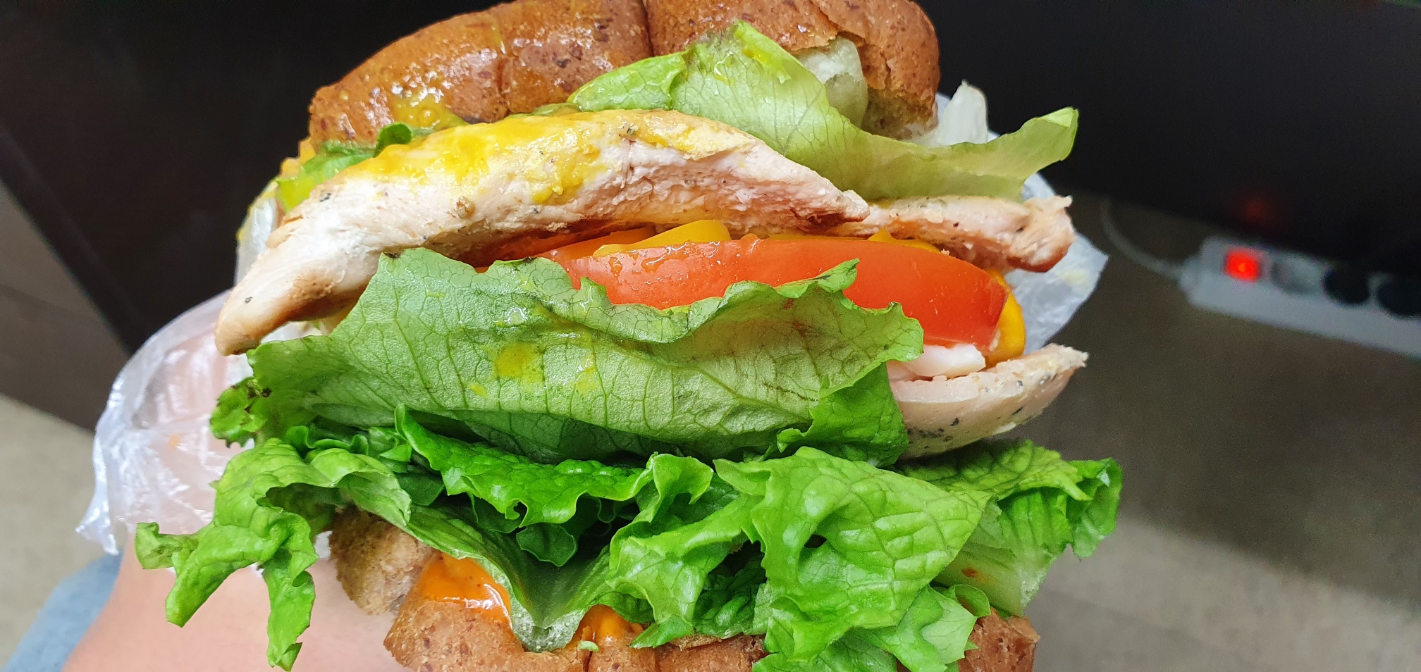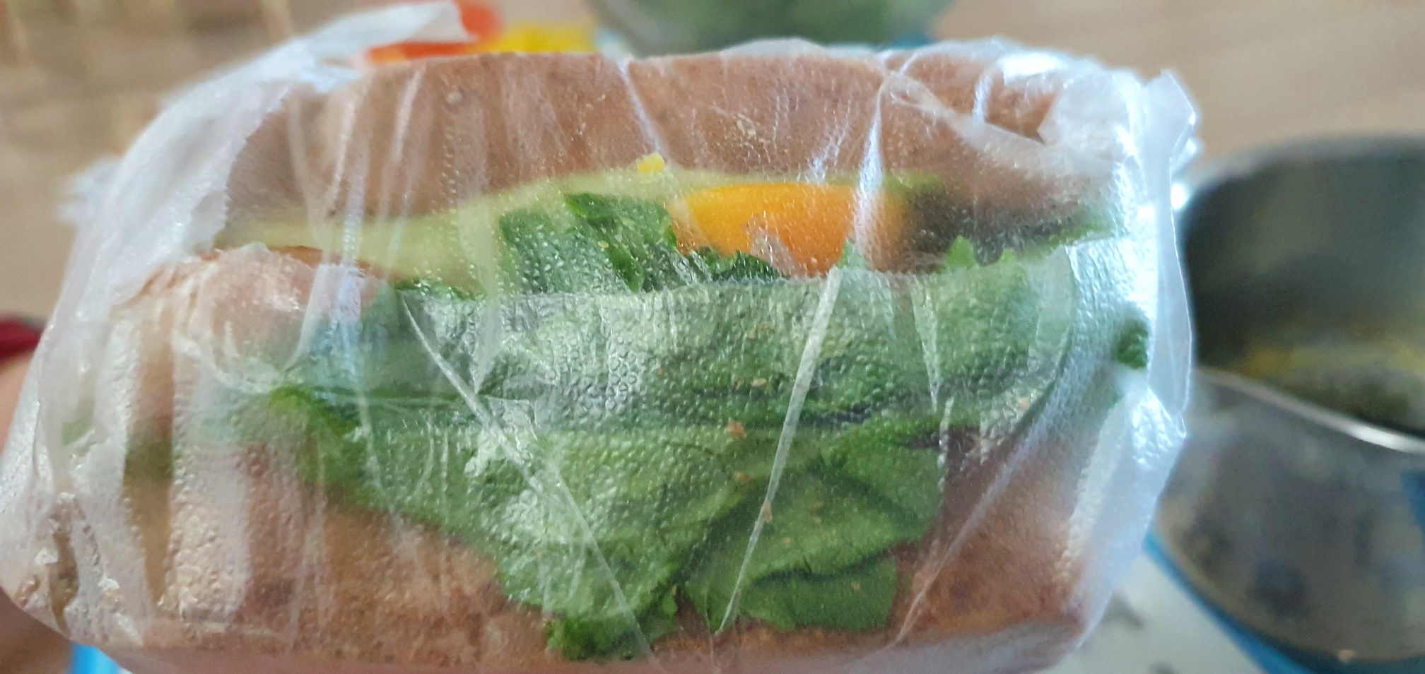 위 사진을 보다시피 역시나 수제 샌드위치이다 보니, 두께가 장난 아니게 두껍다 물론 야채가 많이 들어가기 때문에, 칼로리가 높지는 않다. 랩으로 잘 포장하여 살짝 눌러놓으면 손으로 잡고 먹기에 딱 좋다 신선한 야채가 가득한 샌드위치 하나면 하루가 든든할 정도로 괜찮은 식사가 된다