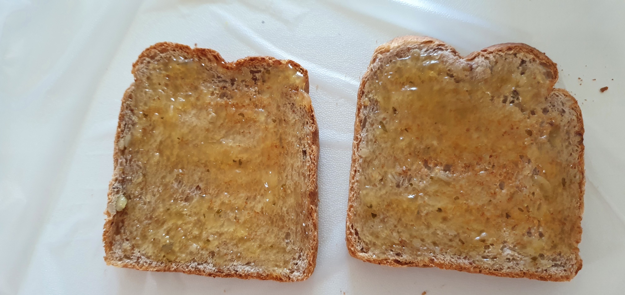 샌드위치를 만들기 위해 반드시 필요한 것이 빵인데, 일반 우유식빵보다, 위처럼 호밀빵을 사용하는 것이 좋다, 이유는 토스터로 구웠을 때 좀 더 단단해서 샌드위치를 만들었을 때 생기는 수분 때문에 빵이 물러지거나 눅눅해지는 현상이 발생하지 않기 때문이다 또한 통곡물로 만들어진 빵이라서, 영양가도 높다 빵을 준비하였다면, 위에서 준비했던, 수제 키위 소스를 빵에 모두 발라주도록 하자
