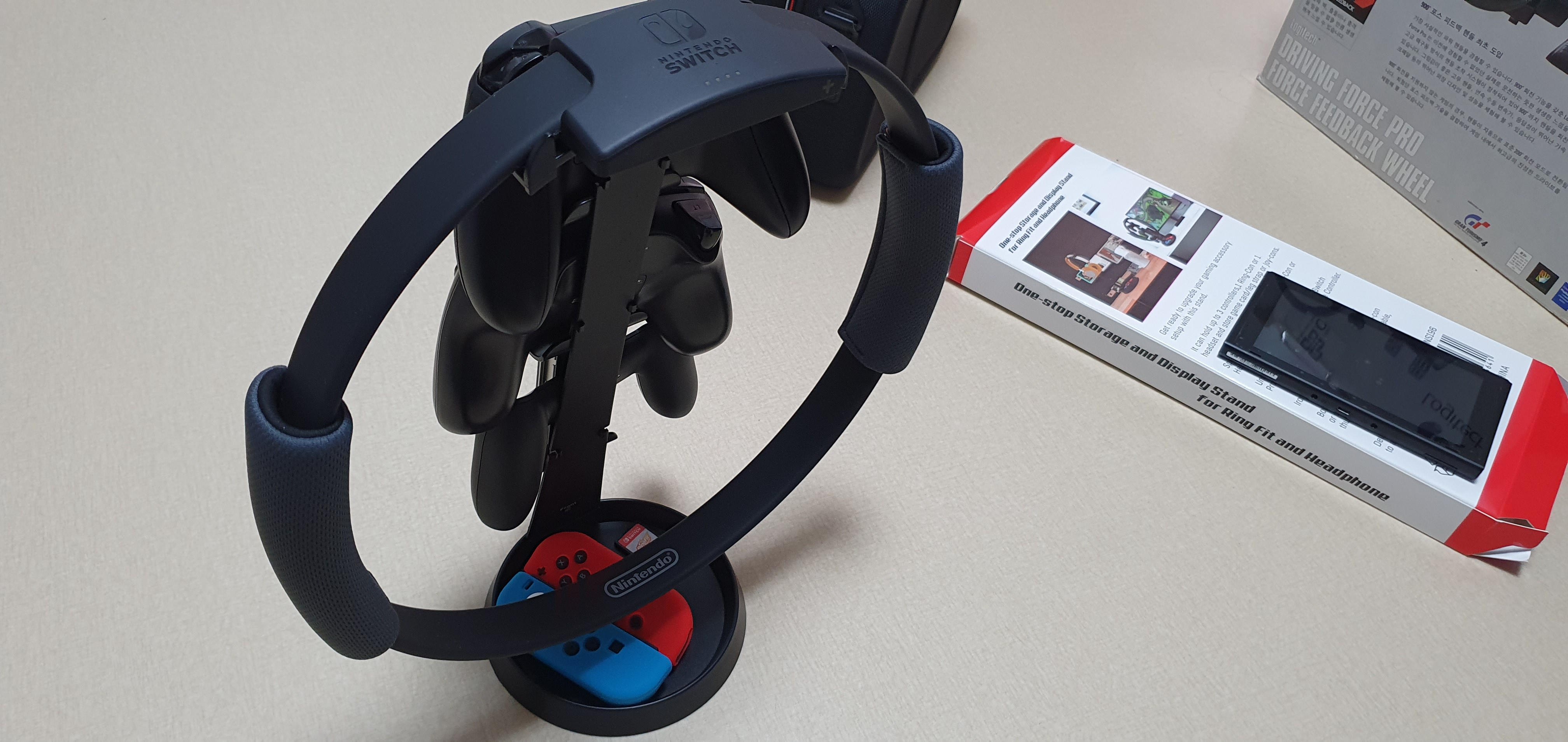 위 사진은 링콘 거치대 조립 후 소지하고 있는 게임패드와 링콘 그리고 조이콘 등을 올려놓은 모습이다. 필자는 너저분해게 여기저기 굴러다니는 걸 좋아하지 않아서, 이렇게 깔끔하게 정리되어 있는 모습이 좋다. 이제서야 무언가 정리가 된 느낌이다. 확실이 그냥 바닥에 놓았을 떄보다, 거치대에 거치해 놓은 모습이 이쁘긴하다. 링 피트니스 어드벤처를 즐기고 있는 분들이고, 마땅히 거치할 것을 찾지 못하셨다면 고려해볼만 할 것같다. 끝.