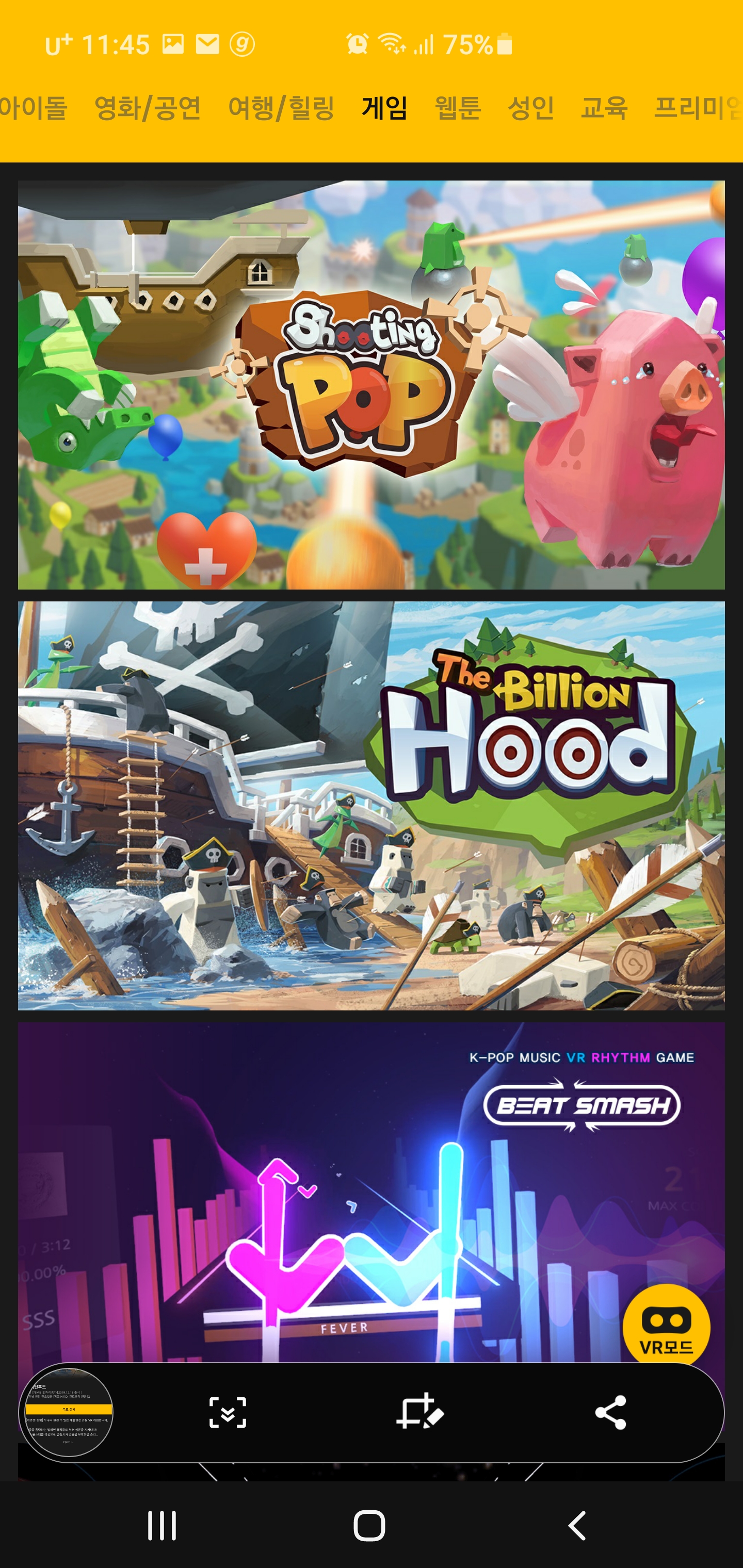 실제 VR 화면을 보여드리진 못하지만 위처럼 많은 콘텐츠가 현재는 만들어져 있고, 다양한 이벤트가 자주 하고 있어서, 단순하게 휴대폰만 들여다 보고 있을 때보다는 조금 신선하게 콘텐츠를 즐겨볼 수 있다. 게임도 생각보다 할만하니 자신에게 맞는 게임을 다운로드하여 즐겨보는 것도 좋을 것 같다. 그래도 필자는 HTC VIVE VR기기가 가지고 싶다는 건 부정할 수 없는 사실이다 끝.