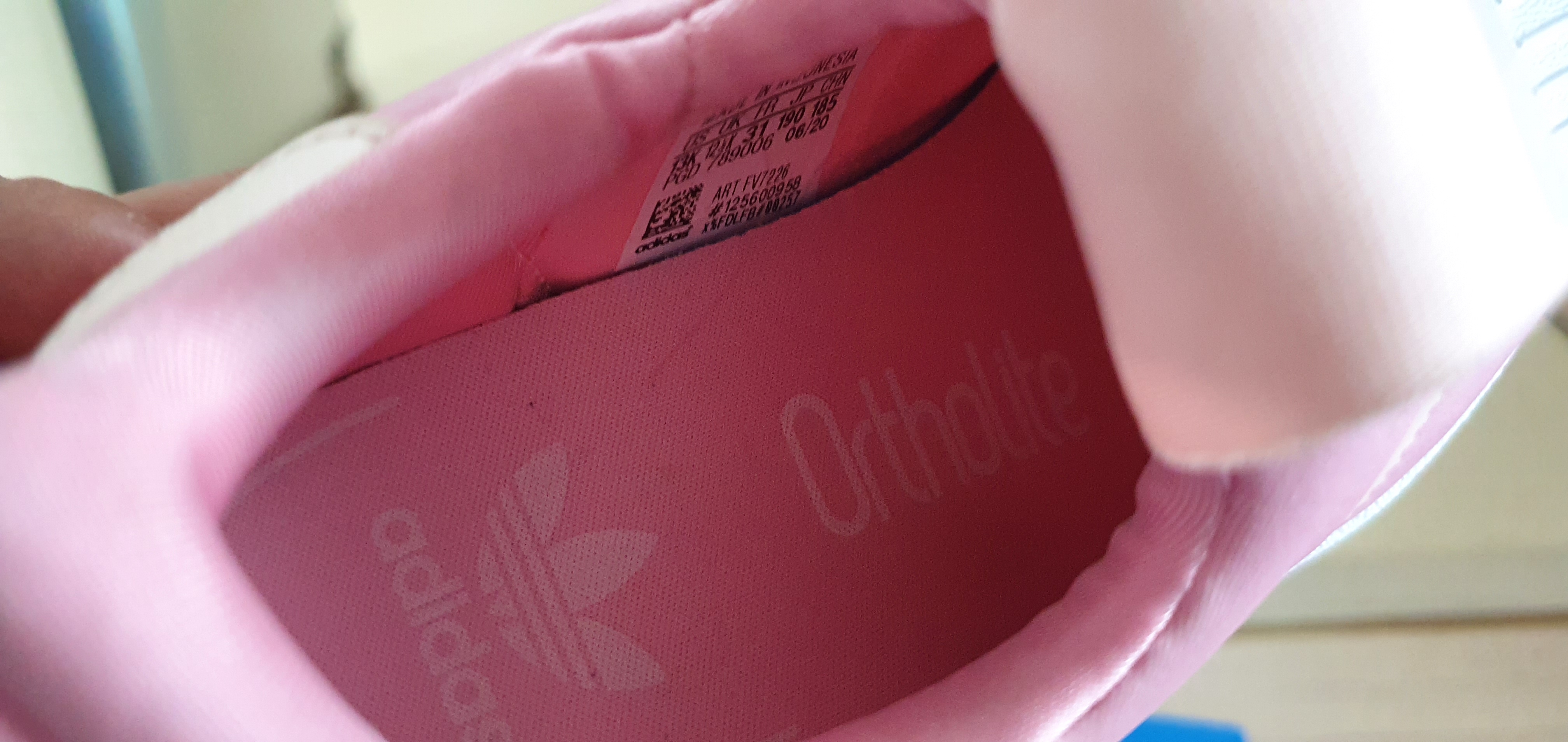 바닥면은 위와 같이 벌집 모양으로 구성되어 있고, 아디다스 로고가 뒷부분에 새겨져 있다. 눌러보면 말캉하지도 않고 그렇게 딱딱하지도 않아서, 걸을 때 발이 불편하거나 하지는 않을 것 같았다. 여자아이를 키우고 있는 부모님들은 아이를 위해서 충분히 구매할만한 제품인 거 같다. 아이 스스로 신발을 신거나 벗기도 용이하고, 스타일도 괜찮아서 어떠한 옷에도 어울릴만한 디자인이라, 고민 없이 구매해도 좋을 것 같다. 끝.