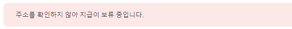 주소를 확인하지 않아 지급이 보류 중입니다.