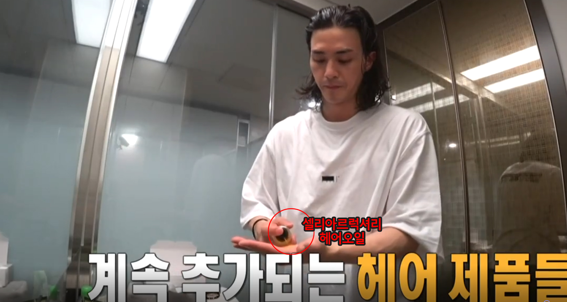 위 장면은 사실 방송을 볼 때에는 눈치 채지 못했었는데, 이후에 김지훈 씨가 저 제품을 사용하는 걸 보고 나서야 알았다. 위에서 언급한 럭셔리 1분 헤어팩과 같은 브랜드의 제품이라서, 필자도 같이 사용하는 제품이다. 보통 헤어 오일은 실리콘 성분 때문에 끈적거리고, 미끌거리고 손에 잔여감도 많이 남는 데다가 무겁게 축 져지는 느낌을 많이 주는 편인데, 셀리아르럭셔리 헤어오일은 머릿결에 그대로 흡수되어 손에 남는 잔여감이 전혀 느껴지지 않고 하루 종일 윤기 나고 부드러운 느낌을 가질 수 있어 남자임에도 자주 사용하고 있다.