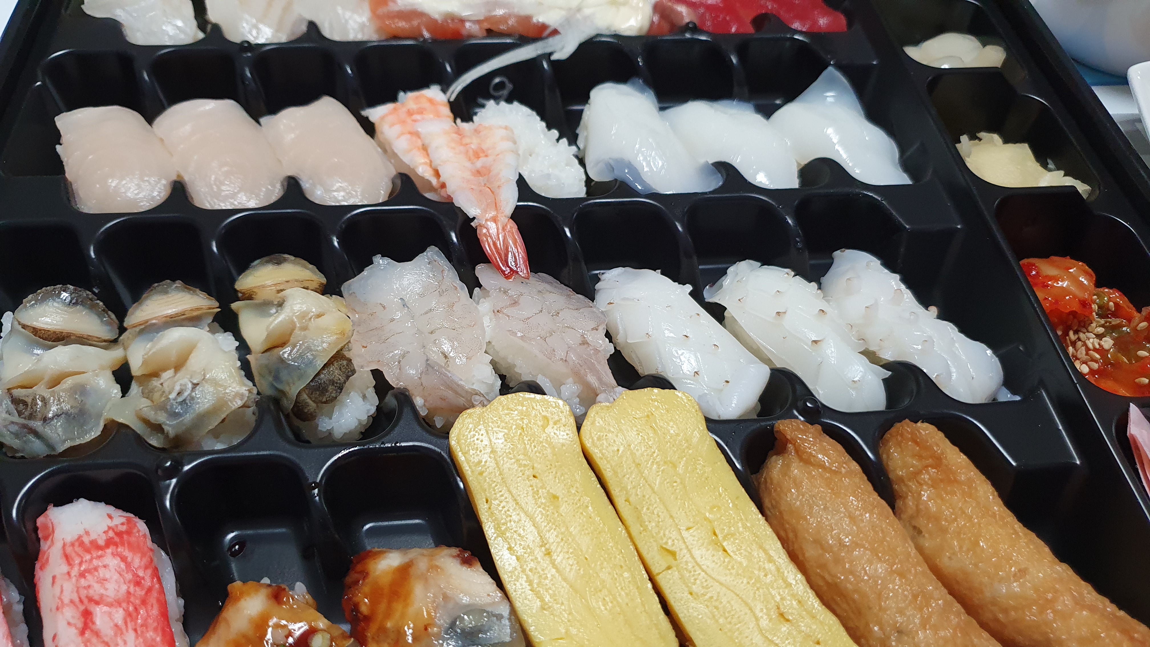 가격은 19,900원이며 초밥의 개수는 총 32피스가 담겨있다. 32피스가 꽤나 많은 양이라 넉넉하게 초밥을 즐길 수 있다. 개수만큼이나, 초밥의 종류도 꽤나 다양하게 준비되어 있고, 계란초밥은 여지없이 우리 집 1호기가 먹어야 하기 때문에, 별도로 뺴두어야하니 그렇게 보면 총 30피스를 먹을 수 있는 셈이다.