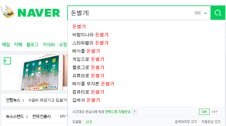 돈벌기라는 키워드로 나열해보니 집에서돈벌기, 인터넷돈벌기, 컴퓨터로돈벌기, 블로그로돈벌기, 용돈벌기 등