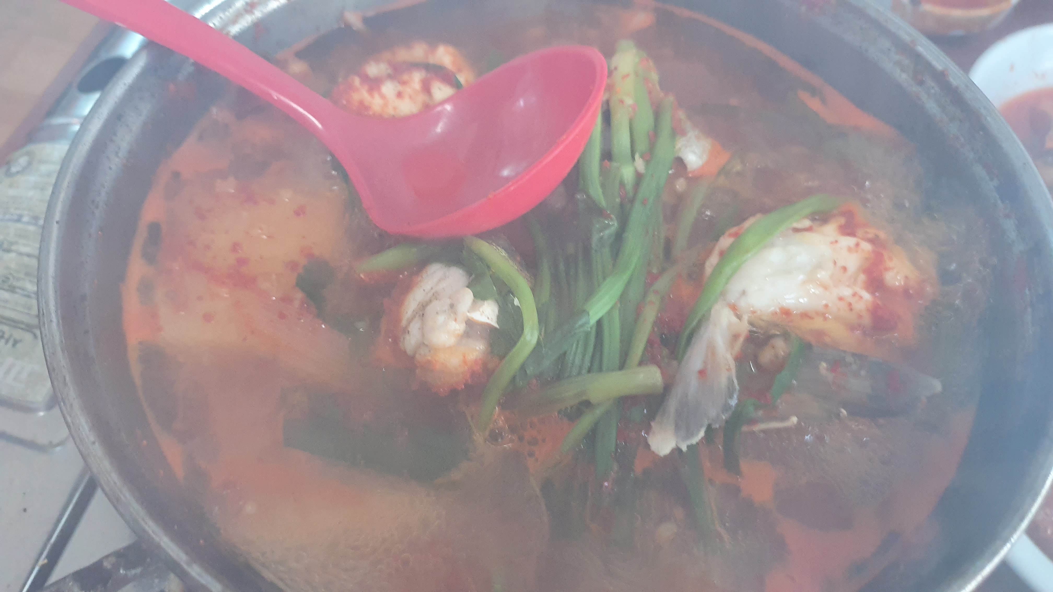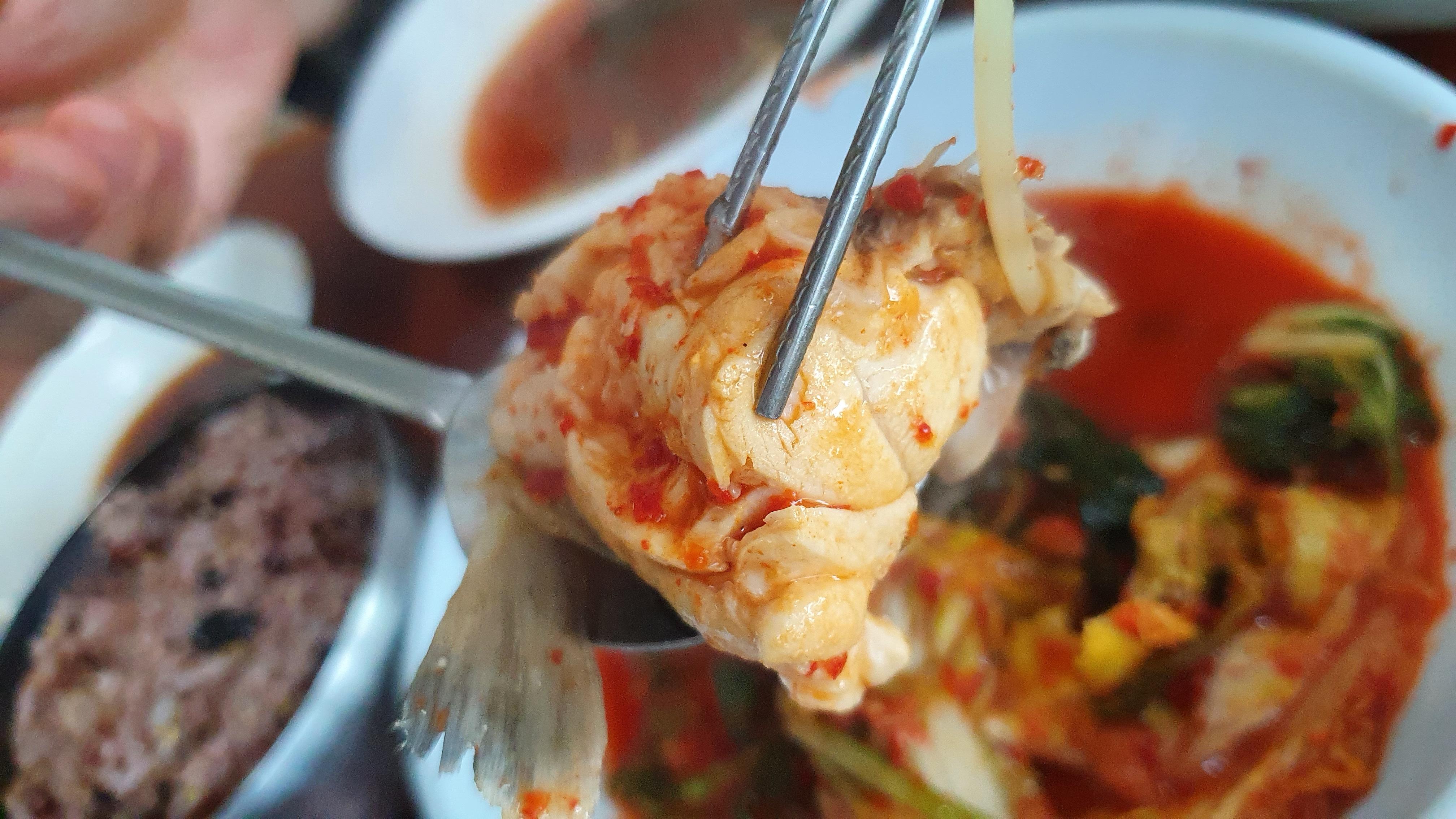 복지리탕을 먹을 까 복매운탕을 먹을까 고민하다 맑은 지리보다 빨간 매운탕이 먹고싶어서 주문한 복매운탕이다. 매운탕에 특징은 묵은지가 바닥에 깔려 있다는 것이고, 국물이 굉장히 얼큰하고 시원한 맛을 아주 맛있게 내어준다. 복어 살도 통통하게 들어 있어서 살짝 떼어낸 후 와사비를 섞은 간장에 찍어서 먹으면 좋다. 회덮밥에 얼큰한 국물까지 먹으니 든든하고 속풀이가 확실히 된다