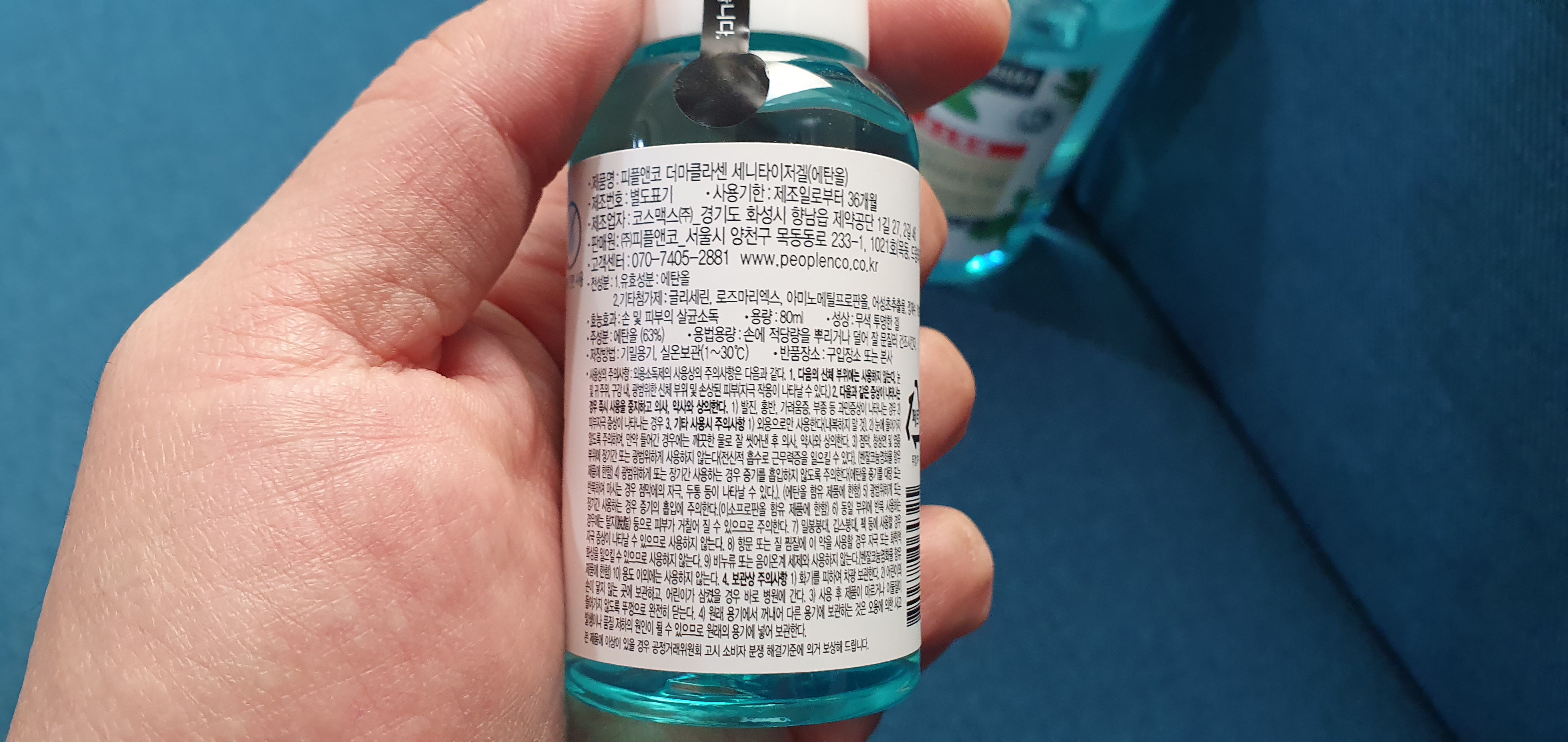 손 소독제는 여타 위 제품 말고도 종류가 엄청나게 많이 있다. 필자가 구매한 제품은 더마 클라센 세이타이저겔 이라고 제품명에 표기되어 있는데 필자는 어떤 제품이든지 판매자보다 제조업자가 어디인지를 따져보는데 이 제품은 세계적으로 유명한 국내 화장품 제조업체인 코스맥스라고 되어 있어, 믿고 구매하게 되었다. 손 소독제에는 유효성분인 에탄올이 포함되어 있는데, 이 에탄올에 함량이 얼마나 포함되어 있는지를 확인하면 된다. 필자가 구매한 제품은 63%가 포함되어 있는 제품이라고 되어 있다. 인터넷을 보면 70% 이상 된 제품을 쓰는 것이 가장 좋다고 하는데 자세히 들여다보면 돈 받고 글 써준 블로거가 대부분이다. 정세가 안 좋은 이 와중에도 이런 걸 마케팅하고 있는 것 같은데 실제로 그렇지 않다. 의약외품 제조기업 연구원은 겔타입에 손 소독제는 54%~62% 사이의 에탄올이 함유된 것이 인체에 가장 이상적인 함량이라고 말하고 있다. 실제로 에탄올 함량이 너무 높으면 오히려 살균력도 떨어지고 피부에 좋지 않게 작용하기 때문에, 알레르기나 부작용을 일으킬 수 있다고 하며, 특히 임산부나 영유아처럼 민감한 사람에게는 오히려 피부 손상 등이 우려된다고 하니 너무 높은 함량의 제품을 사용하지 않을 것을 전문가들은 권장하고 있다.